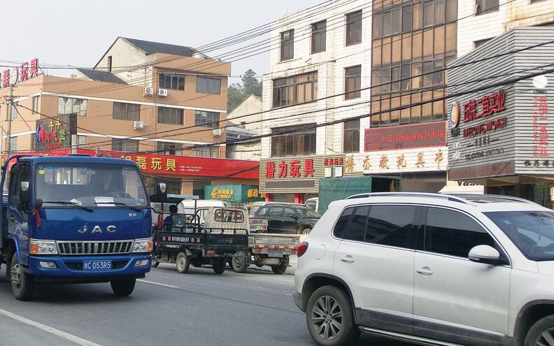 橋下鎮(zhèn)梅岙教玩具市場(chǎng)外車(chē)水馬龍