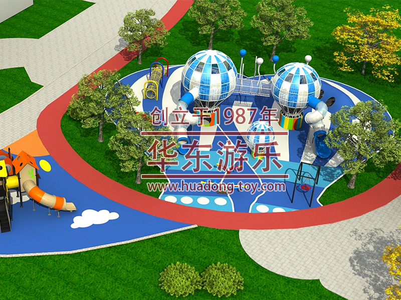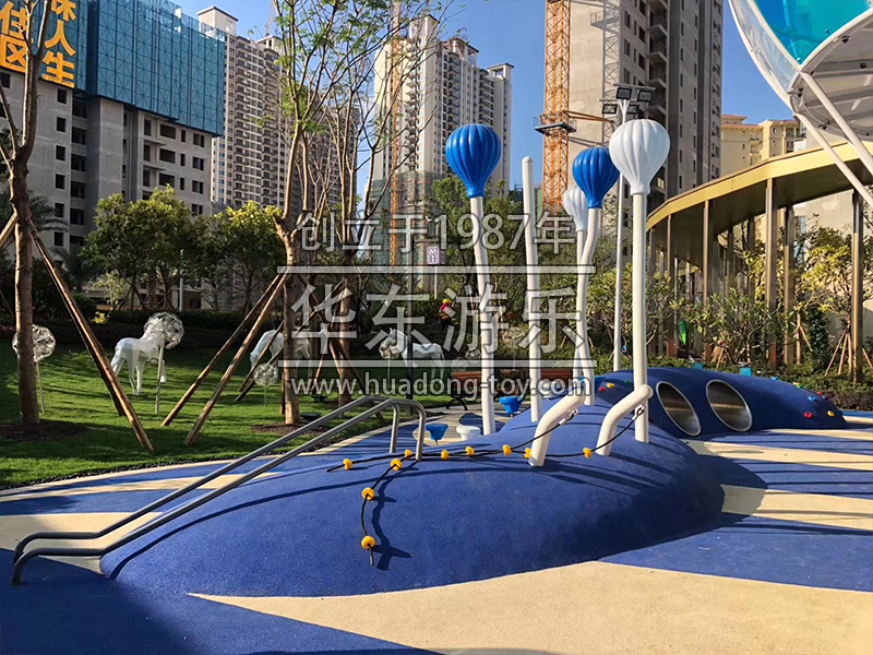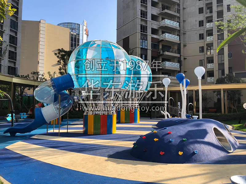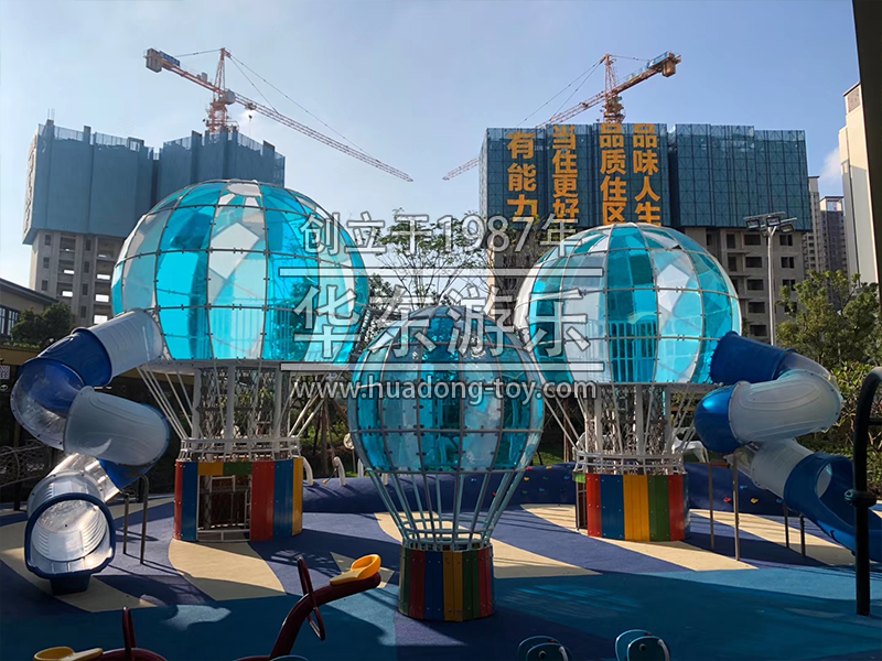 該項目采用的是以熱氣球為設(shè)計思路而設(shè)計的游樂場,場內(nèi)設(shè)計了爬網(wǎng),大型滑梯組合,秋千等等游樂設(shè)備。