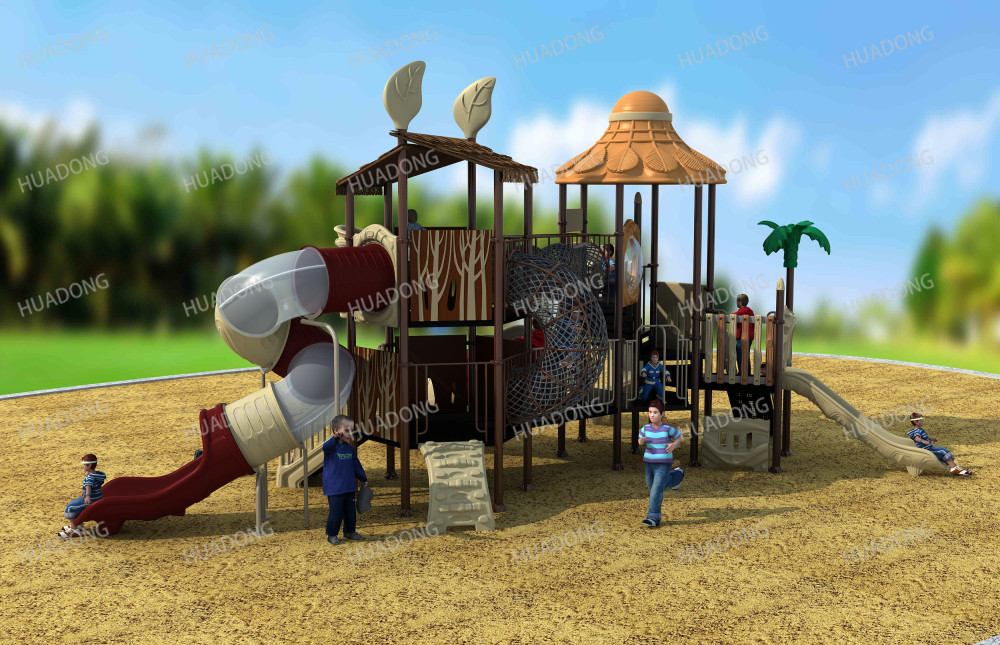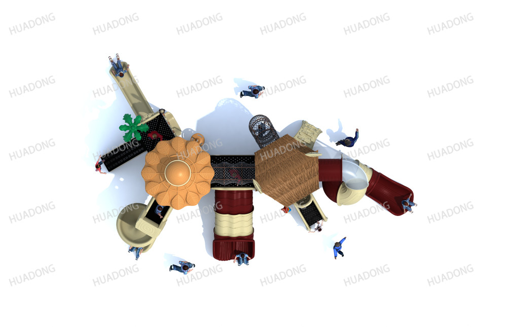 遠(yuǎn)古部落系列雖然名字帶著“古”字,但是在設(shè)計(jì)細(xì)節(jié)處無(wú)不透露著藝術(shù)與創(chuàng)造性。當(dāng)孩子在仿真樹(shù)中探索、冒險(xiǎn)、嬉戲游玩時(shí),就像穿越到古老的神秘森林;粗略的樹(shù)干包圍著他們,頭頂是高聳的茅草屋,觸感真實(shí)的枯枝走廊,還有隨處可見(jiàn)的小動(dòng)物們…… 遠(yuǎn)古部落系列旨在打造區(qū)別于其他系列帶給孩子們的新鮮感,讓孩子們找設(shè)計(jì)者打造的神秘世界中獲得冒險(xiǎn)的樂(lè)趣。
