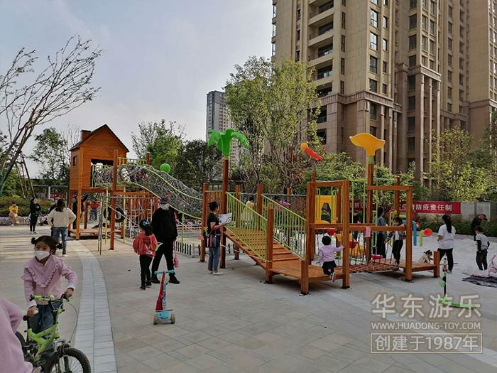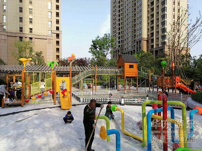 該項目采用非標(biāo)定制木制工藝,有滑梯、沙池、傳聲筒 、爬網(wǎng)已經(jīng)音樂系列的敲打設(shè)備,整體設(shè)計完美,符合房地產(chǎn)整體規(guī)劃。