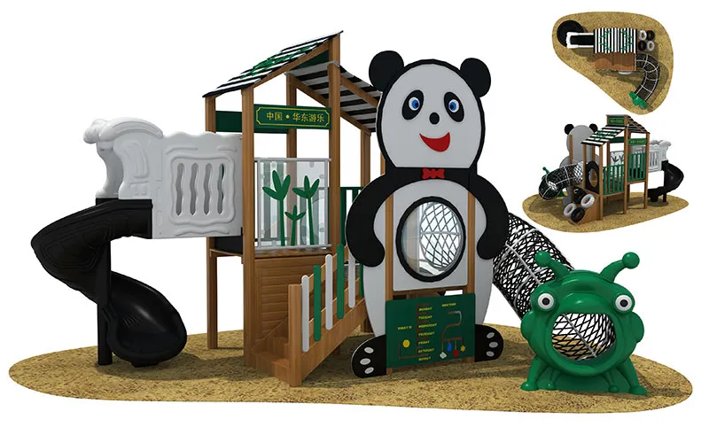 產品亮點:華東大熊貓主題滑梯組合做工精細,外觀精致、質量好,整體設計圓棱圓角,該系列產品高端大方,并在最大范圍內為小朋友提供了安全而有趣的探索環(huán)境。