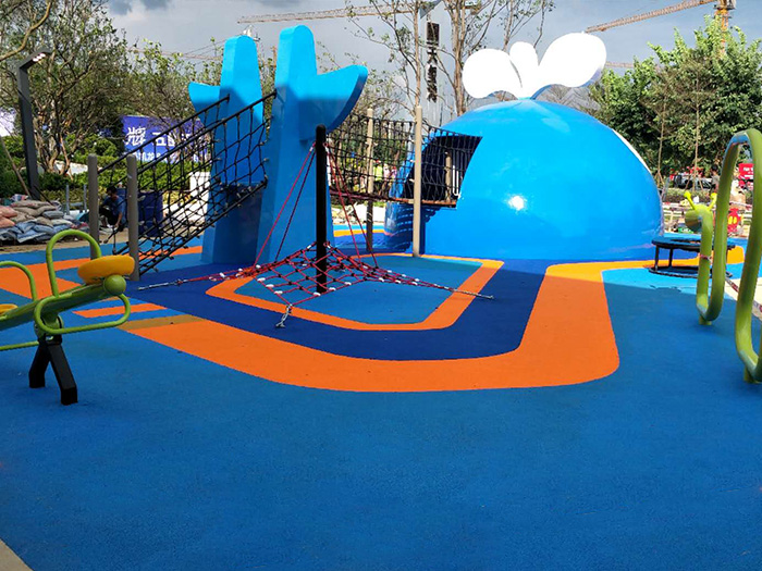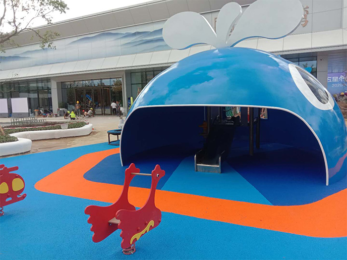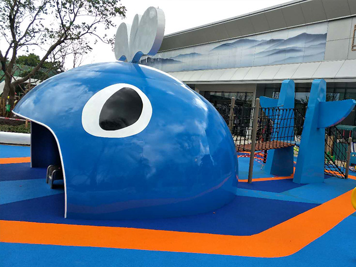 廣西賀州碧桂園項目是一個以鯨魚為原型而設(shè)計的游樂設(shè)備項目,整個項目充滿了海洋氣息,設(shè)置了蹺蹺板、搖搖樂、滑梯、爬網(wǎng)等游樂設(shè)備。