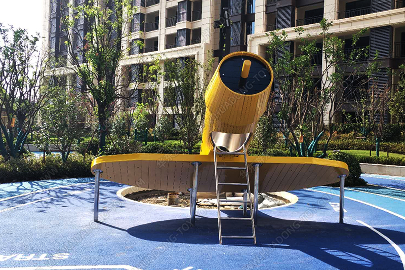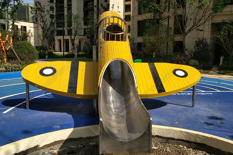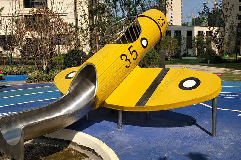該項目采用的是以復(fù)古式的戰(zhàn)斗機為設(shè)計主題,整個設(shè)計了爬梯、不銹鋼滑梯、沙池、搖搖馬等游樂設(shè)備,給小朋友帶來了很好的游樂環(huán)境。