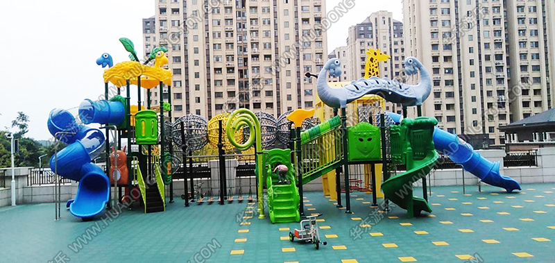 該幼兒園項目采用的是華東游樂自主研發(fā)的動物世界系列大型滑梯組合,該滑梯以可愛的小動物為設(shè)計模型,讓小朋友可以和諧的與小動物相處,教育他們能夠保護小動物,愛護小動物。
