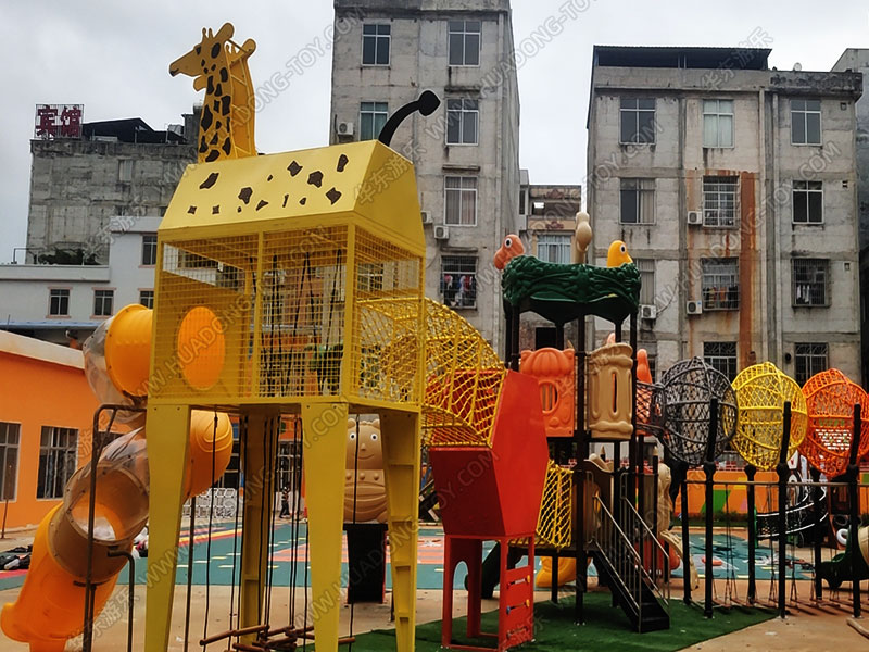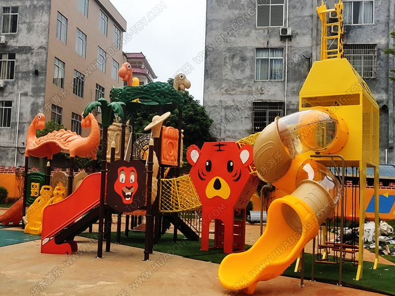 該幼兒園項目采用的是華東游樂自主研發(fā)的動物世界系列大型滑梯組合,該滑梯以可愛的小動物為設計模型,讓小朋友可以和諧的與小動物相處,教育他們能夠保護小動物,愛護小動物。