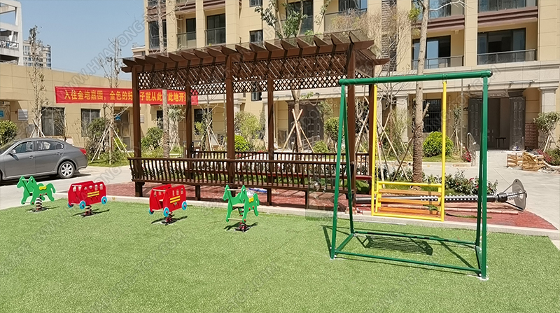 碧桂園金地嘉園項(xiàng)目是國(guó)內(nèi)大型房地產(chǎn)項(xiàng)目,整個(gè)項(xiàng)目采用以環(huán)保的綠色為主,主體游樂設(shè)備采用綠色的森林系列大型滑梯組合,新增了搖搖樂,健身器材,萬能秋千組合等游樂設(shè)備,不僅僅豐富了小區(qū)的休閑娛樂,也為小朋友玩耍提供了場(chǎng)所。