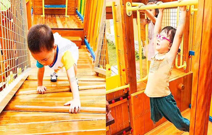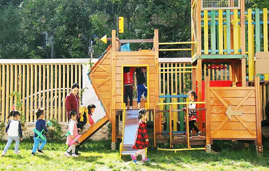 該幼兒園采用的是非標(biāo)定制的木制產(chǎn)品,整套產(chǎn)品設(shè)計獨特、顏色艷麗,非常美觀的融入到整個幼兒園的娛樂場地,是集攀爬、滑梯、爬網(wǎng)、萬能健身為一體的綜合性游樂項目,讓小朋友在玩耍的同時身體也得到了鍛煉。