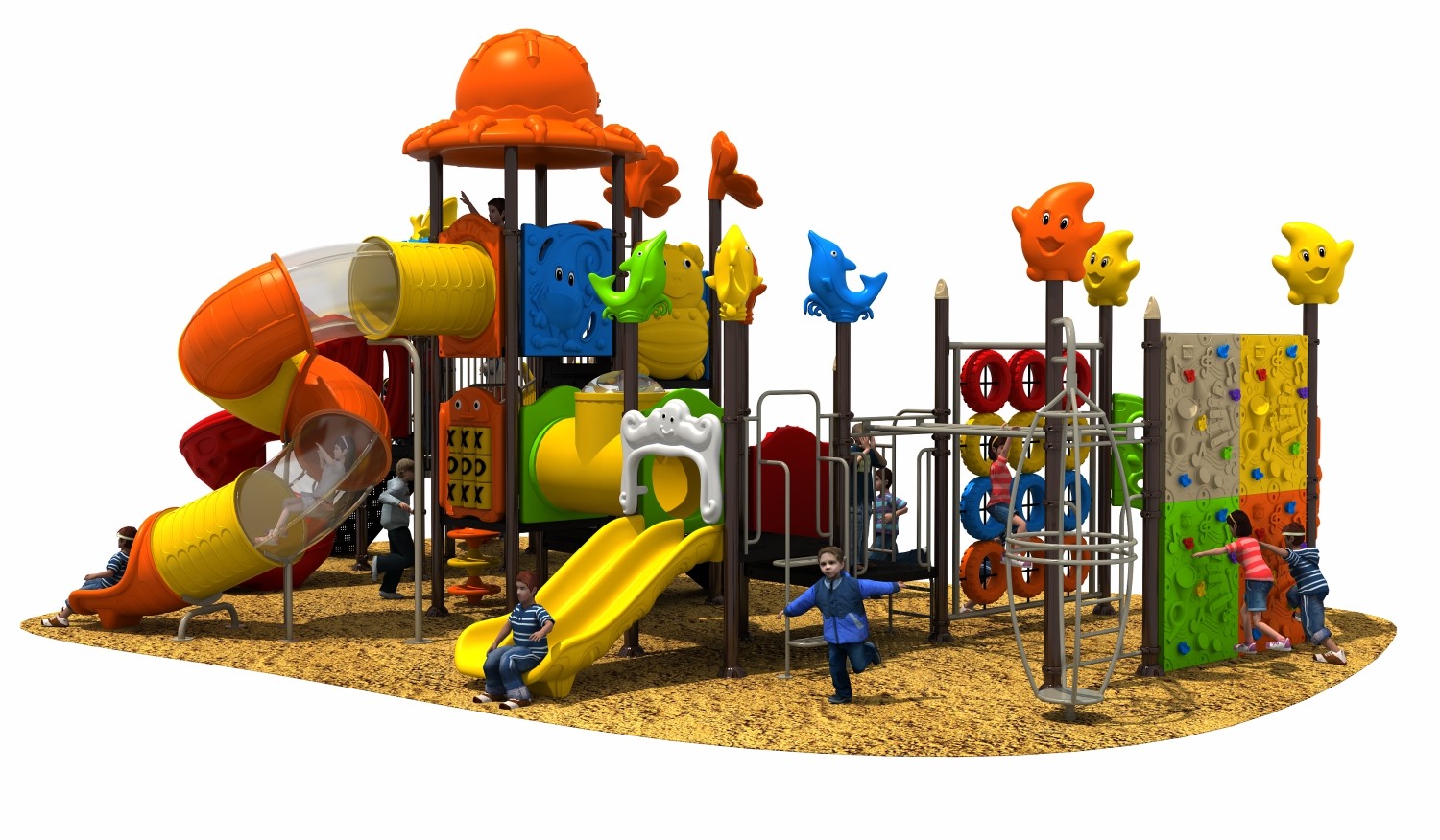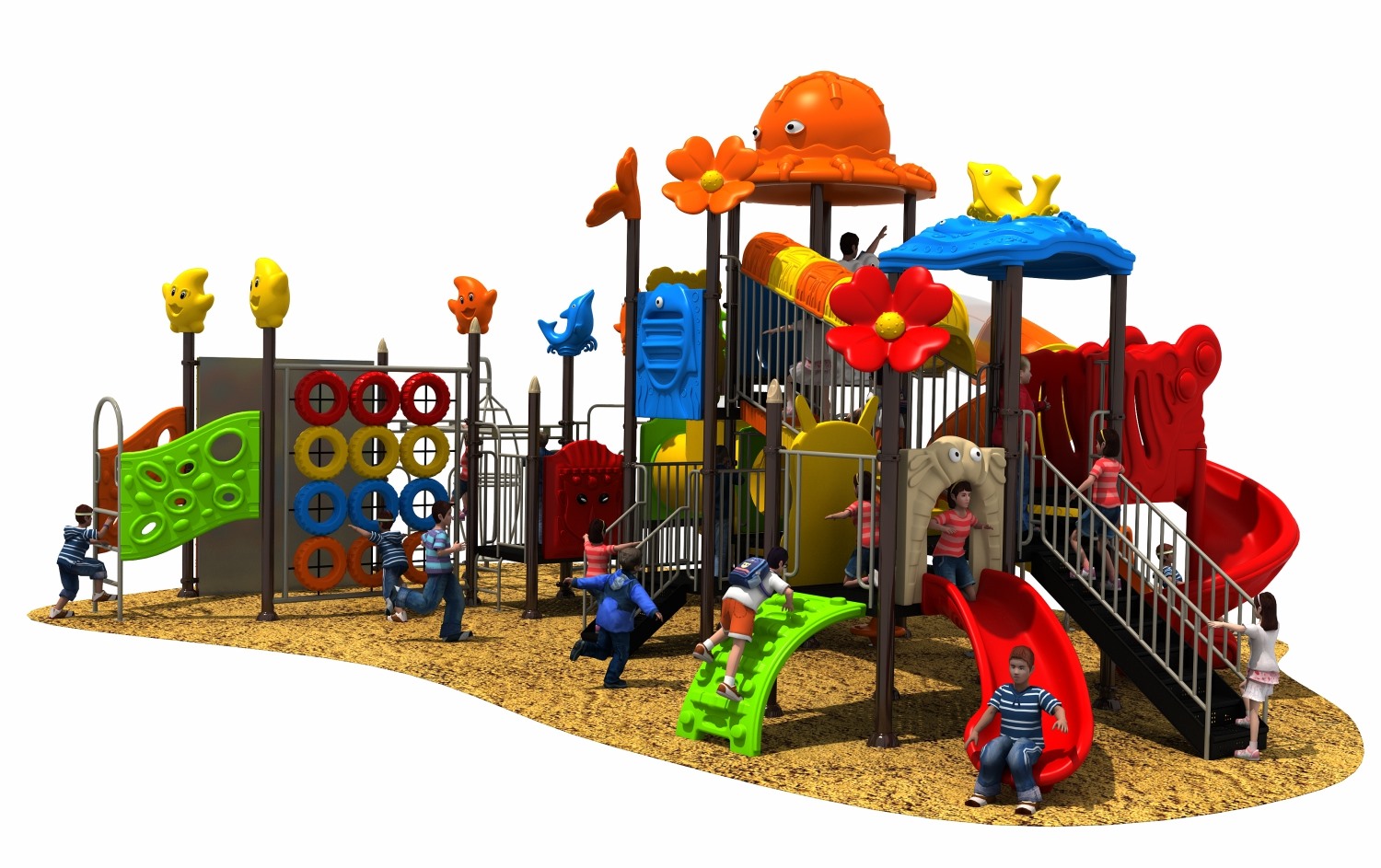 動物戶外大型玩具,是目前動物樂園里最逼真的一個系列,這 個系列是我公司設(shè)計師同國外造型專家共同開發(fā)的結(jié)晶,形狀可愛, 造型逼真,是一套與眾不同的動物樂園。它有動物園的樂趣,有海 底世界的神秘,有大草原的率真,孩子玩樂中可以感受到動物的可 親可愛可玩可樂,使幼兒園生機(jī)勃勃,場面活躍。