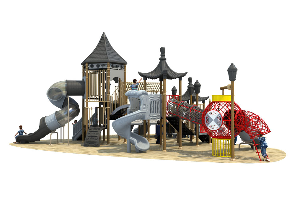 中國風(fēng)系列是一種具有中國風(fēng)建筑特色的大型滑梯組合,以蘇州園林與徽派建筑為靈感,將涼亭、房屋、大紅燈籠融入現(xiàn)代游樂設(shè)備,體現(xiàn)建筑美學(xué)的簡潔、復(fù)古、大方,為孩子打造一個(gè)奇妙的游樂世界,積極培養(yǎng)孩子對(duì)中國傳統(tǒng)文化的熱愛,弘揚(yáng)中國傳統(tǒng)與親身體驗(yàn)。
