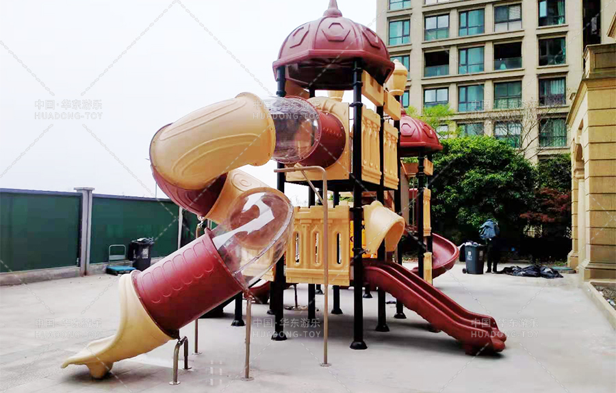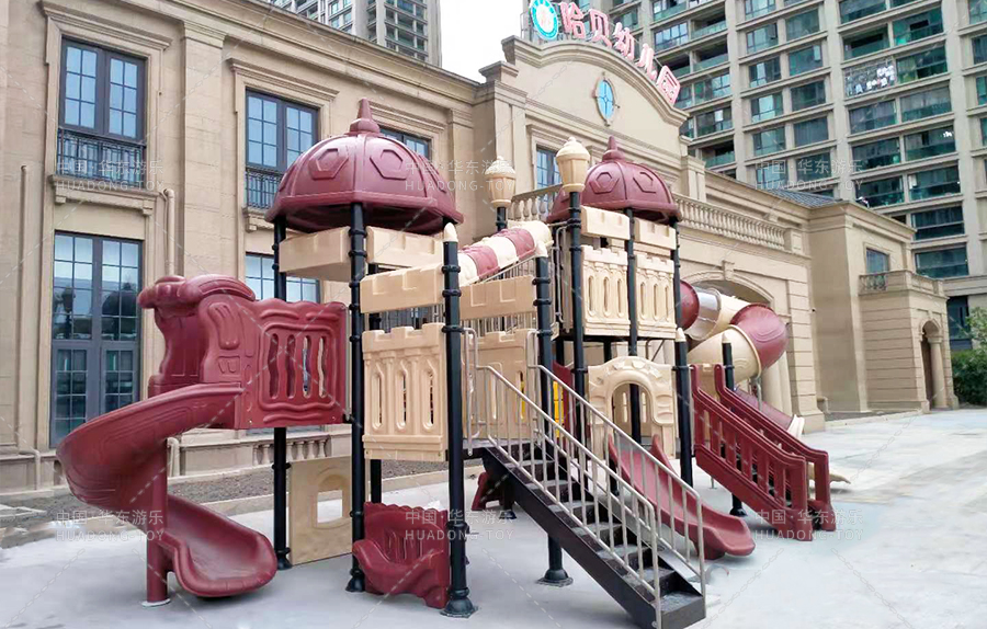 哈貝幼兒園選用的是華東游樂設(shè)備生產(chǎn)的別墅屋系列滑梯,該滑梯具有選擇滑梯、滑桶等功能,具有顏色艷麗、使用時間長等特點,深受廣大顧客的喜愛。