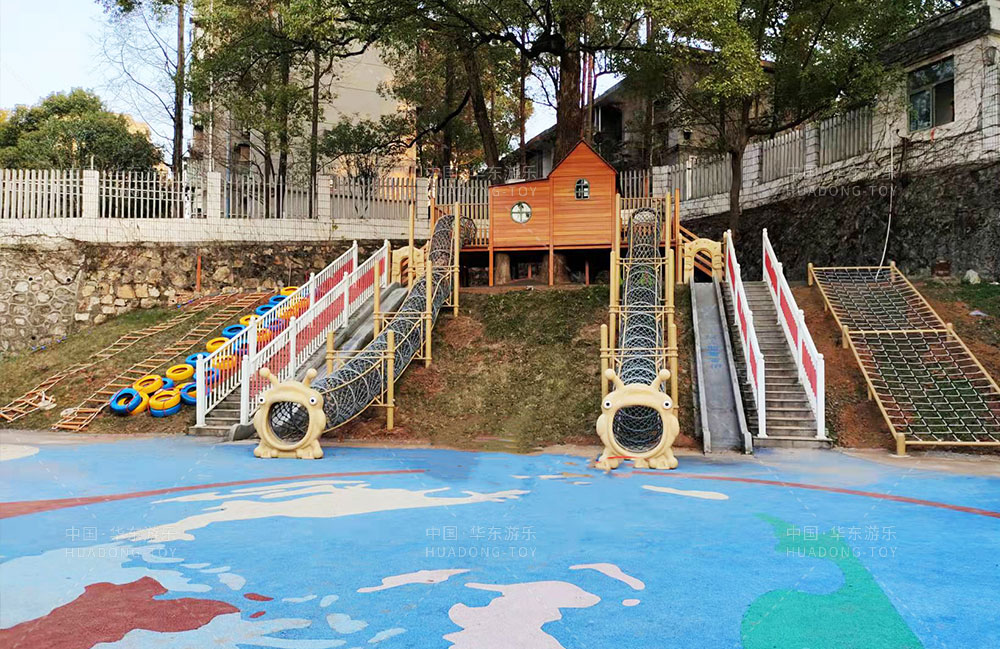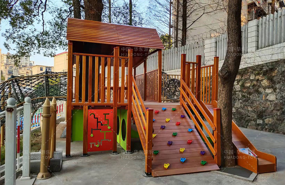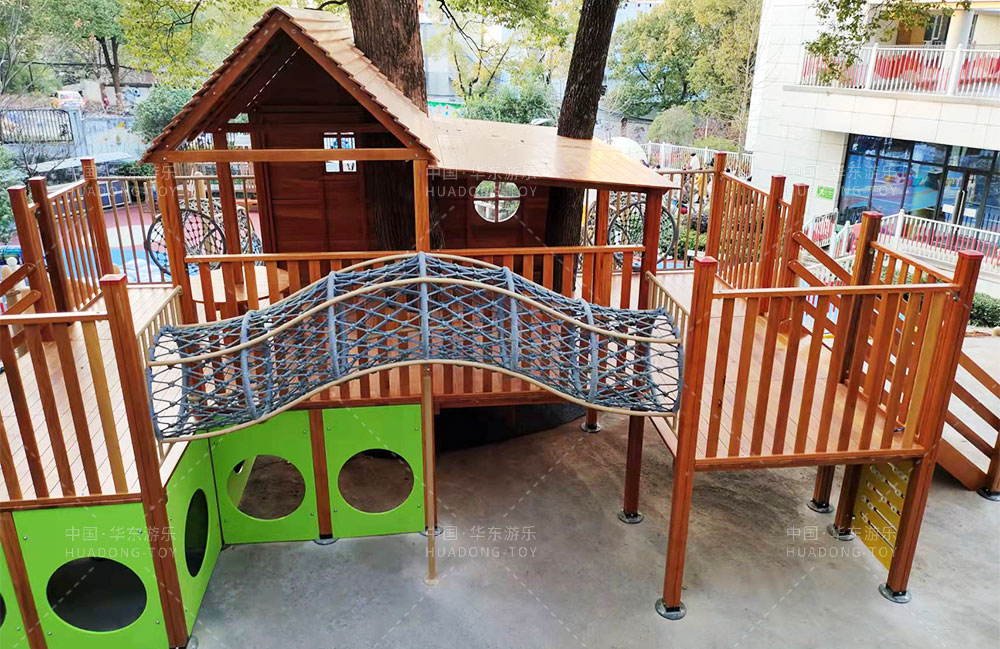 湖南省株洲市株機幼兒園是一家專業(yè)的學(xué)前教育培訓(xùn)機構(gòu),此次項目采用的是華東游樂自主研發(fā)的木制非標(biāo)游樂項目,整個項目設(shè)置的有木制游戲小屋,攀爬墻、攀網(wǎng)鉆洞、輪胎攀爬等游樂設(shè)備。