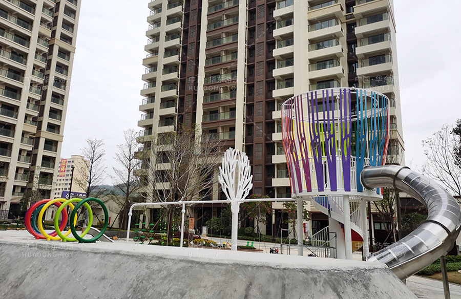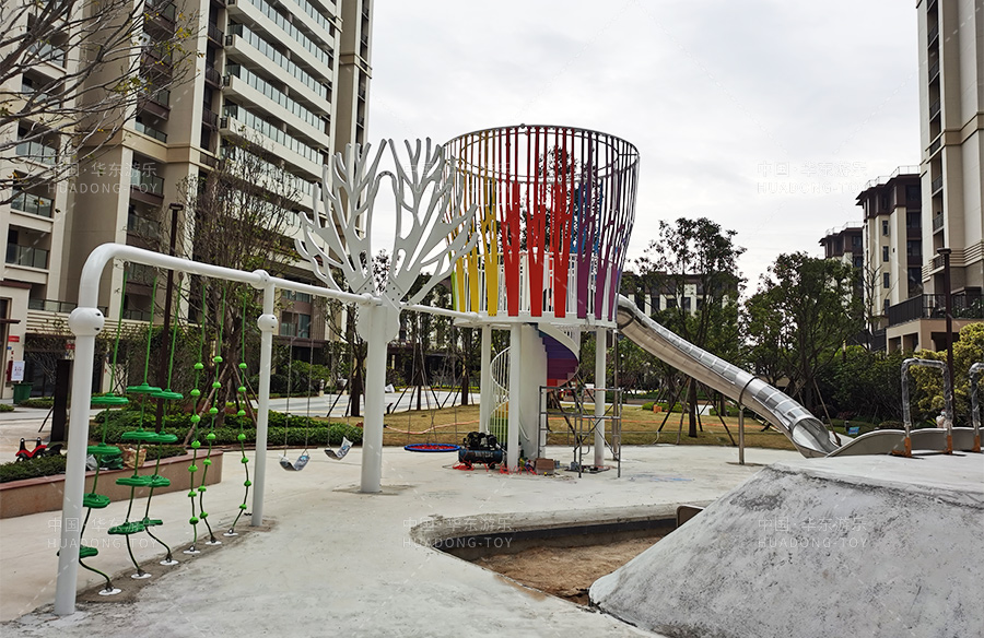 青陽二期采用是是華東游樂非標定制的游樂設備,設計了大型的網(wǎng)紅滑梯、小朋友喜歡的葫蘆攀爬、攀爬繩和秋千組合,為生活在該小區(qū)的人們提供了一個休閑娛樂的場所,也為小朋友的健康成長提供了一個游樂場。
