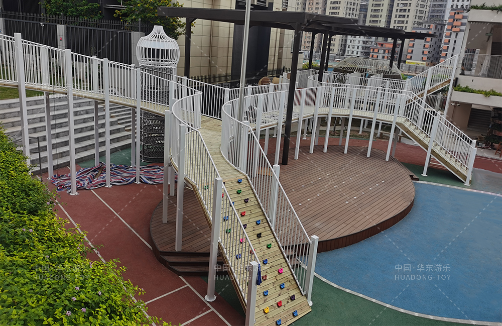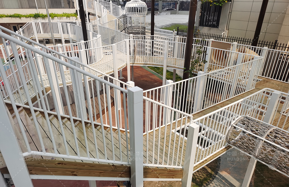 和風軒幼兒園專業(yè)的學前教育培訓學校,該學校的項目采用的是以空中樓閣為主題而設計的 游樂設備,整個游樂設備采用鋼架構和木制結構制作而成,設計了鉆洞、攀爬、空中廊橋等功能,該項目的設計不僅僅豐富的小朋友的玩耍,同時也為整個校園增添了活力。