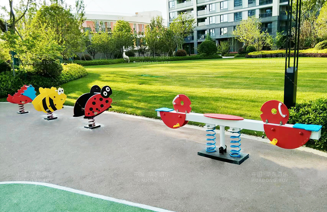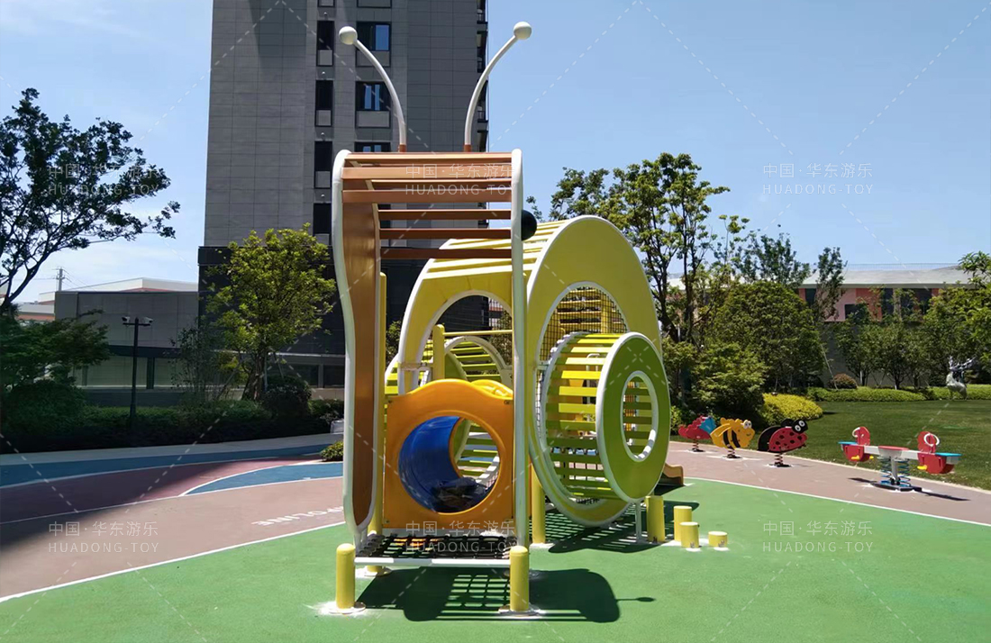 溫州德信博悅灣選用的是華東游樂設(shè)計和生產(chǎn)的以動物世界的蝸牛為外形而設(shè)計的游樂設(shè)備,整個游樂場添置了小朋友喜歡的搖搖樂、傳聲筒、蹺蹺板、攀爬桿等游樂設(shè)備,為生活在該小區(qū)的小朋友提供了一個娛樂、休閑、玩耍的場所。