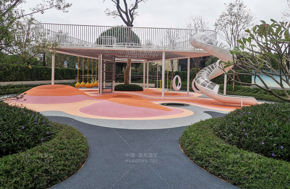 南寧市華潤(rùn)地產(chǎn)未來(lái)城市是一個(gè)高端的生活小區(qū),該項(xiàng)目選用的是華東游樂(lè)自主研發(fā)和設(shè)計(jì)的非標(biāo)定制游樂(lè)設(shè)備,整個(gè)項(xiàng)目分別設(shè)計(jì)了小朋友喜歡的大型滑梯、月亮秋千、傳聲筒、鉆洞、爬網(wǎng)、蕩球等功能,為生活在該小區(qū)的人民提供了一個(gè)很好的休閑娛樂(lè)的場(chǎng)所。