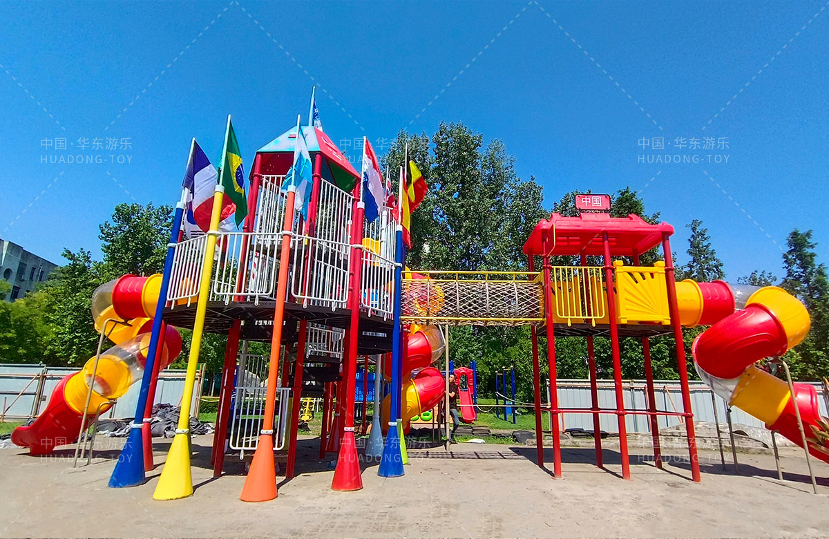 該項(xiàng)目選用的是華東游樂(lè)自主研發(fā)和設(shè)計(jì)的跨國(guó)系列組合滑梯,該滑梯具有豐富的主題,是一款功能齊全、玩法多樣的組合滑梯,深受小朋友的喜愛(ài)。