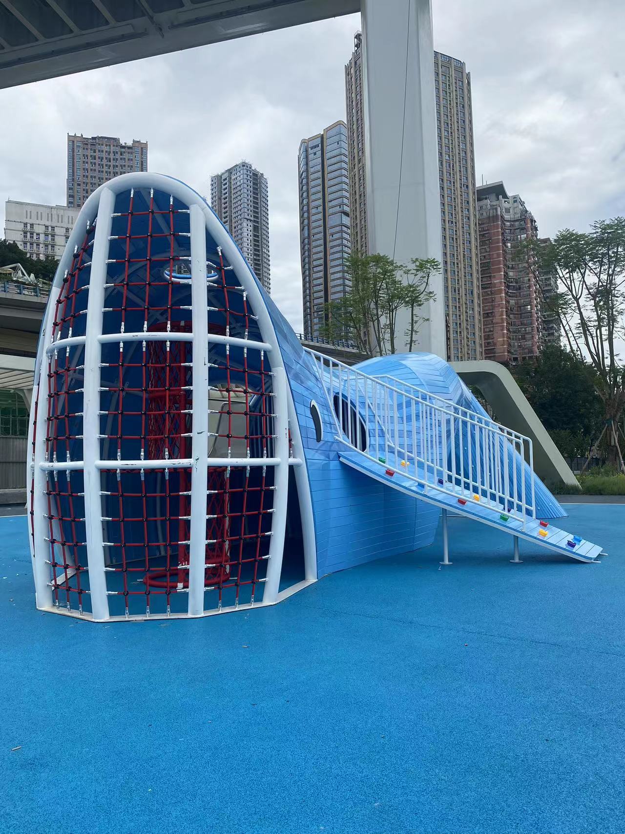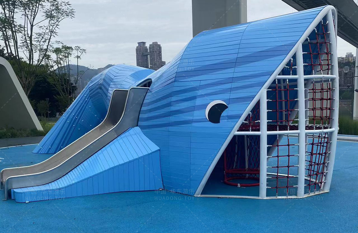 重慶市珊瑚公園是一個公益性的,專門為該區(qū)域游玩的人群提供休閑、娛樂的場所,此次選用的游樂設(shè)備是華東游樂自助研發(fā)和設(shè)計的以大鯊魚為主的非標(biāo)定制設(shè)備,具備了攀爬網(wǎng)、攀爬墻、鉆洞、不銹鋼滑梯等功能。