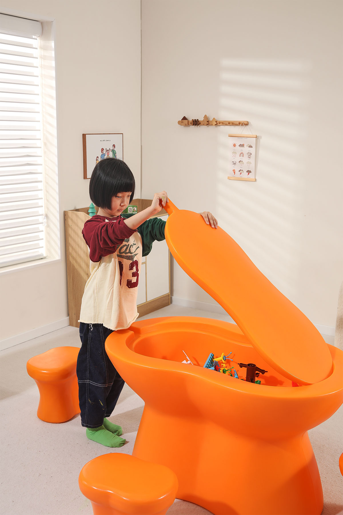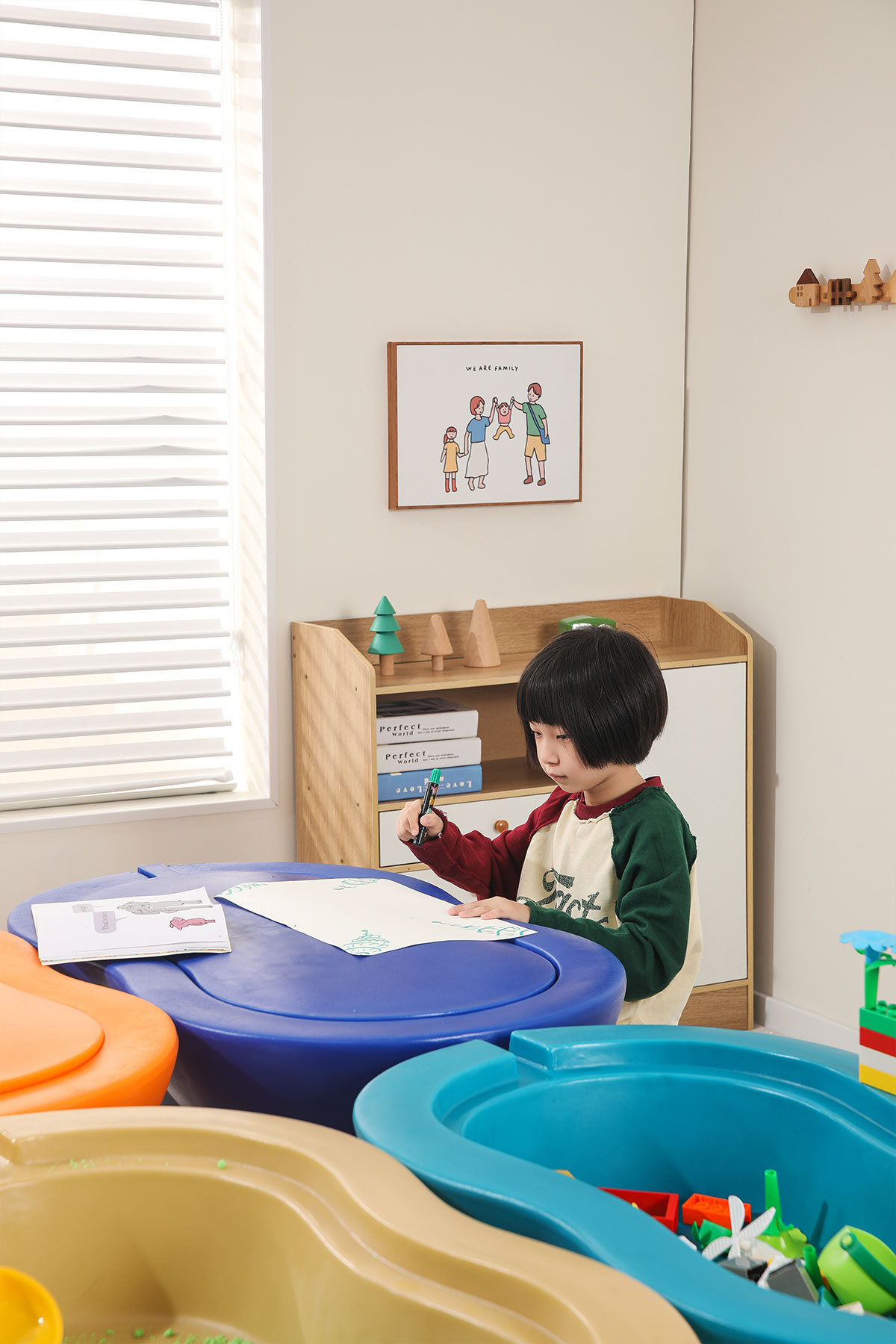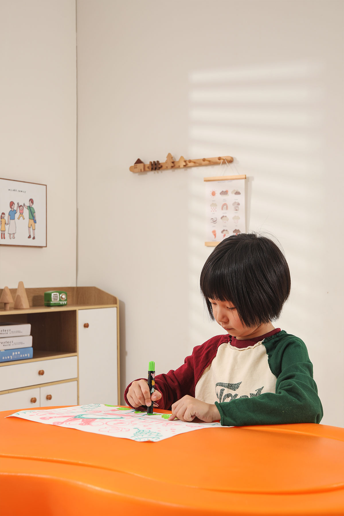 儲物柜的設(shè)計充分考慮了兒童的收納需求,柜內(nèi)分隔合理,便于孩子分類存放玩具和學(xué)習(xí)用品。同時,柜子采用滑動門設(shè)計,開合順暢,安全可靠。