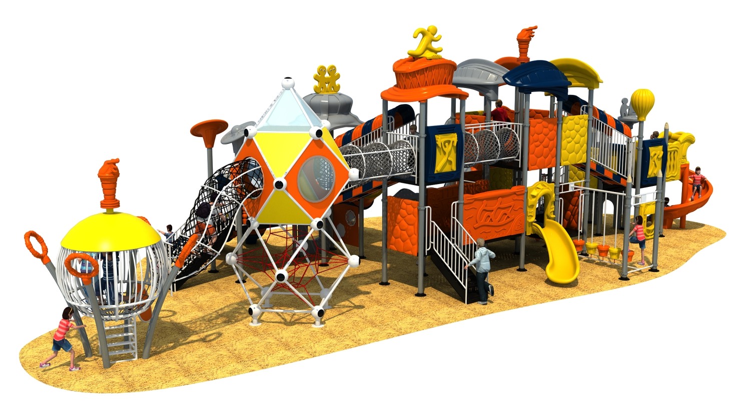 賽事系列游樂(lè)設(shè)備是華東游樂(lè)根據(jù)常見(jiàn)的足球、壘籃球體育等賽事而自主研發(fā)和設(shè)計(jì)的組合滑梯,它是一款能夠引導(dǎo)孩子們?cè)谕嫠r(shí)小朋友之間應(yīng)該互相幫助、相互鼓勵(lì)的無(wú)動(dòng)力游樂(lè)器械,也是一個(gè)具備教導(dǎo)孩子們學(xué)會(huì)通過(guò)自己的努力取得最終勝利而敢于拼搏和挑戰(zhàn)的游樂(lè)設(shè)備,卡通的造型、生動(dòng)的形象讓小朋友在玩耍的過(guò)程中有一個(gè)愉快的童年。