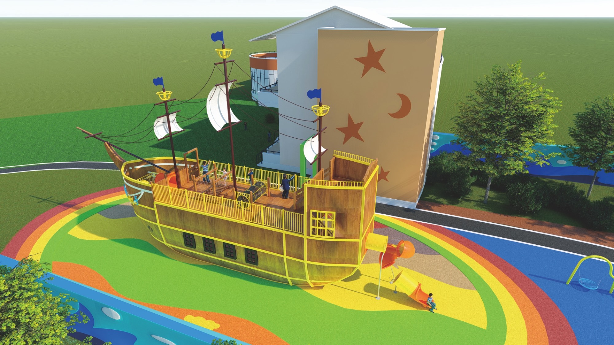 木質(zhì)海盜船組合滑梯的設(shè)計以大自然為主題,融合了船體、桅桿、甲板等元素,外觀新穎、結(jié)構(gòu)牢固。它集攀爬、滑梯、秋千等功能于一體,旨在鍛煉孩子的平衡協(xié)調(diào)能力和自我保護意識,同時培養(yǎng)探險精神。