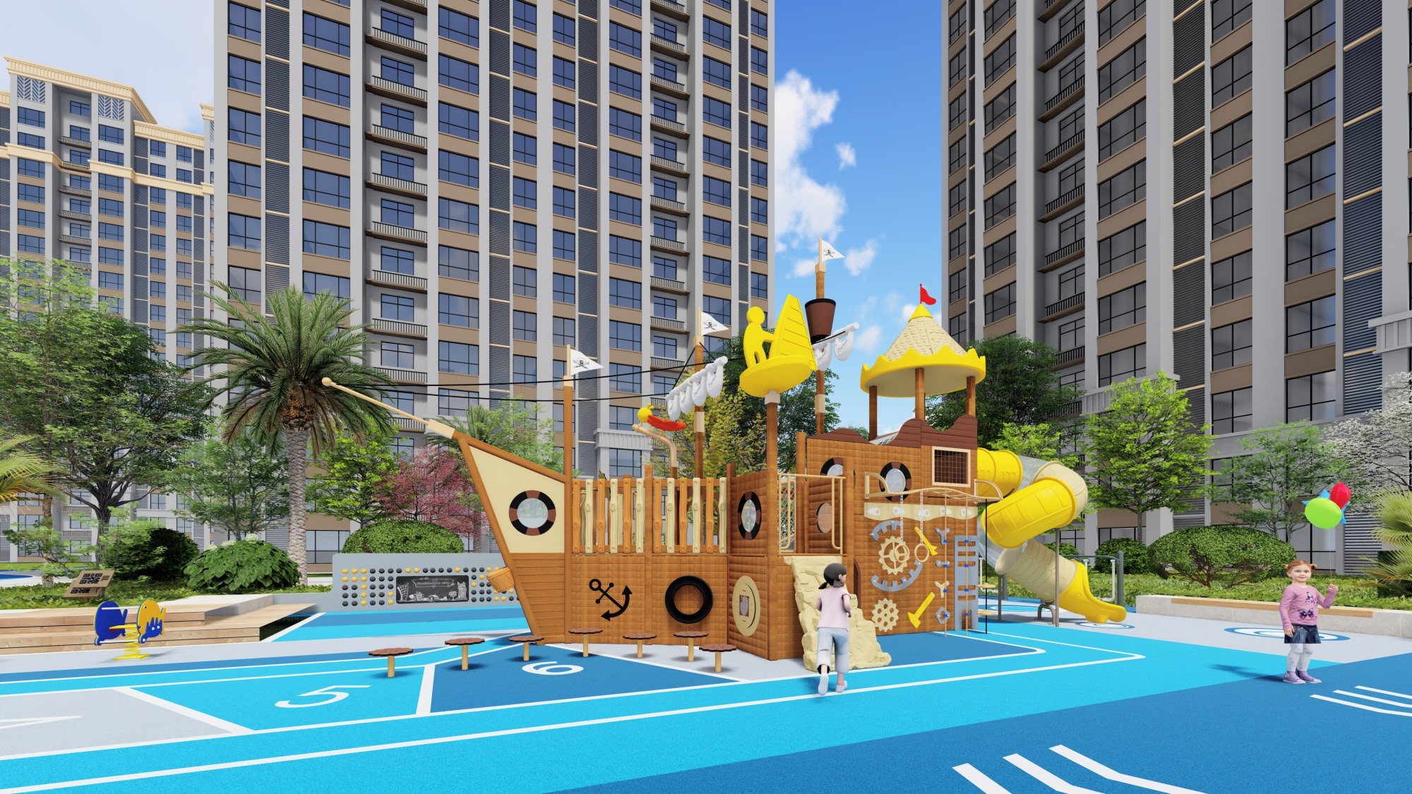 木質(zhì)海盜船組合滑梯的設(shè)計(jì)以大自然為主題,融合了船體、桅桿、甲板等元素,外觀新穎、結(jié)構(gòu)牢固。它集攀爬、滑梯、秋千等功能于一體,旨在鍛煉孩子的平衡協(xié)調(diào)能力和自我保護(hù)意識,同時培養(yǎng)探險精神。