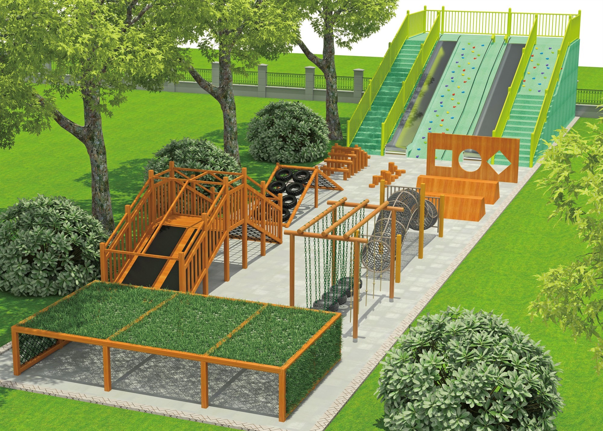 木質(zhì)拓展設(shè)施采用天然木材打造,設(shè)計(jì)注重安全與挑戰(zhàn)并重。通過(guò)懸掛橋、攀爬網(wǎng)、平衡木等多樣化的障礙元素,旨在提升參與者的體能、平衡感及團(tuán)隊(duì)協(xié)作能力,同時(shí)享受親近自然、挑戰(zhàn)自我的樂(lè)趣。