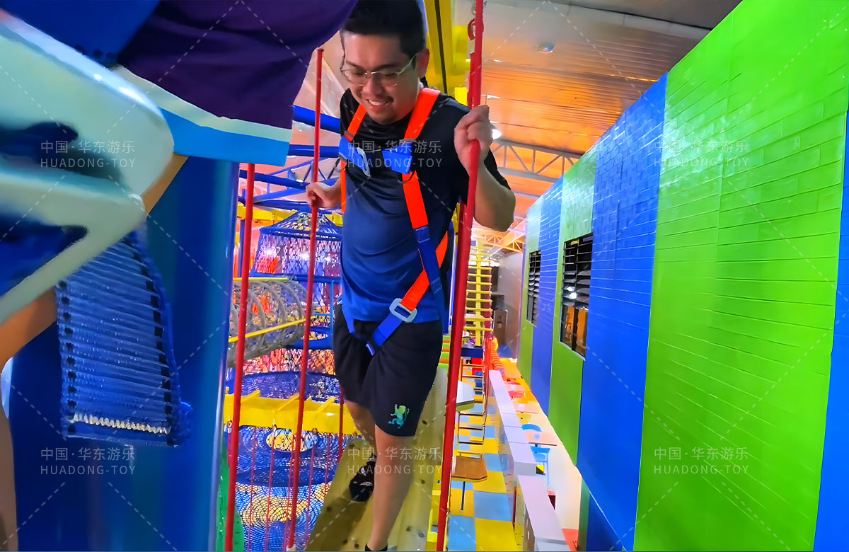 菲律賓達(dá)沃市中心商場(chǎng)超級(jí)挑戰(zhàn)者樂園是一個(gè)綜合的拓展類型的游樂項(xiàng)目,是一個(gè)讓充滿冒險(xiǎn)精神的人群進(jìn)行的體能訓(xùn)練游樂區(qū)域,具備了各種類型的體育攀爬、不同難度級(jí)別的沖關(guān)冒險(xiǎn),讓喜歡冒險(xiǎn)的人群在這里感受不一樣的激情和歡樂。