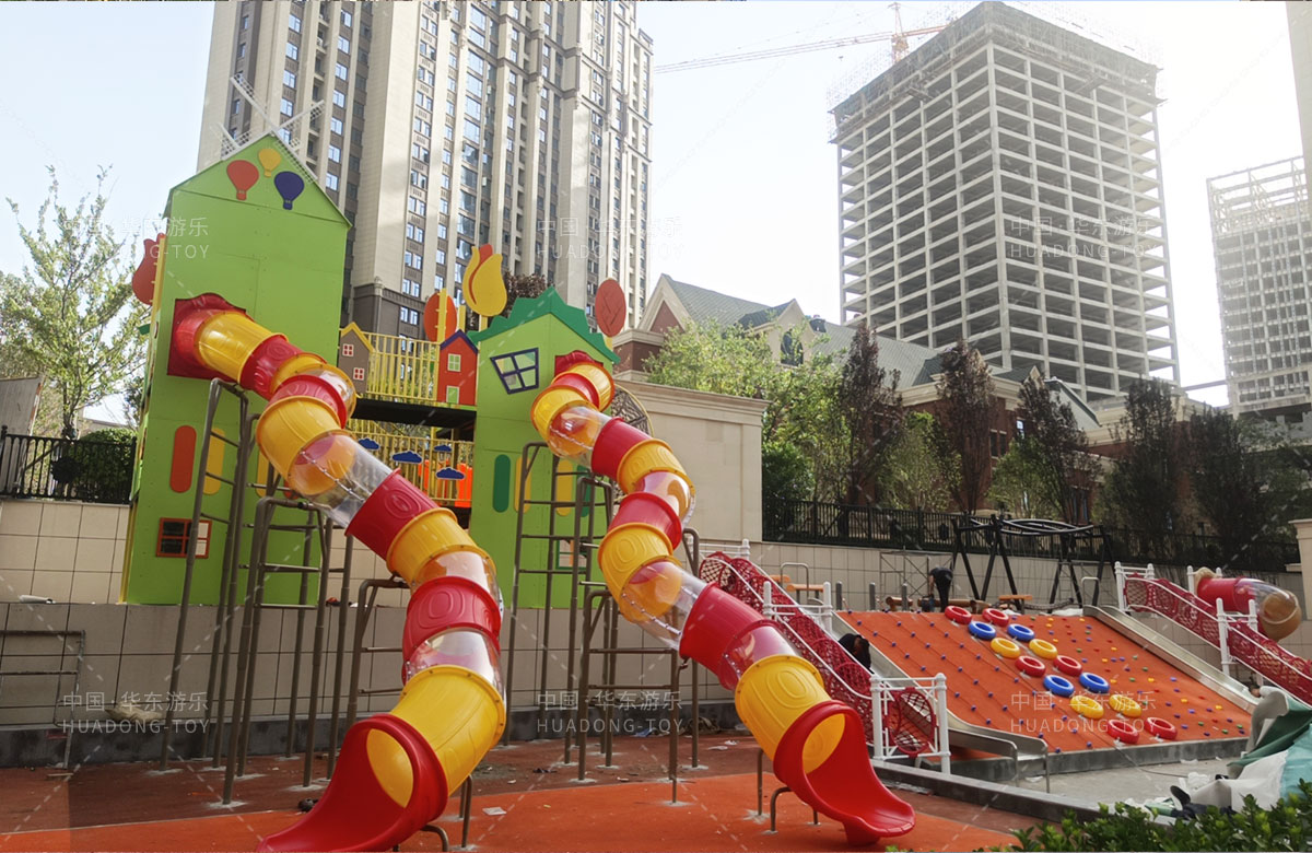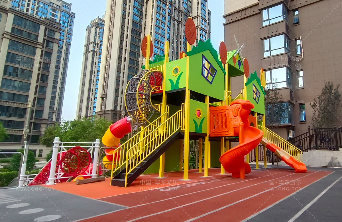 德福房地產(chǎn)駿景御園選用的是華東游樂自主研發(fā)和生產(chǎn)的趣味小屋為主題的游樂設(shè)備,整個場地分別設(shè)置了小朋友喜歡的組合滑梯、旋轉(zhuǎn)座椅、不銹鋼滑梯、組合秋千、各種類型的拓展游樂設(shè)備,不僅僅豐富了小區(qū)的生活,也為孩子們的健康成長提供了保障。