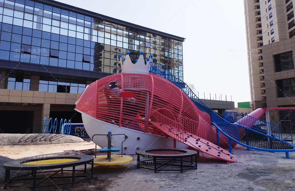 該項(xiàng)目選用的是以鯨魚為主題的兒童游樂(lè)園,為了更好的給孩子們提供一個(gè)愉快的童年,整個(gè)游樂(lè)園除了設(shè)計(jì)具有攀爬網(wǎng)、旋轉(zhuǎn)滑梯、攀爬墻等功能為一體的鯨魚組合游樂(lè)設(shè)備,除此之外還設(shè)置了地蹦床、旋轉(zhuǎn)椅、兒童搖搖樂(lè)等游樂(lè)設(shè)備,為生活在當(dāng)?shù)氐娜巳禾峁┝艘粋€(gè)休息、娛樂(lè)、遛娃的場(chǎng)所。