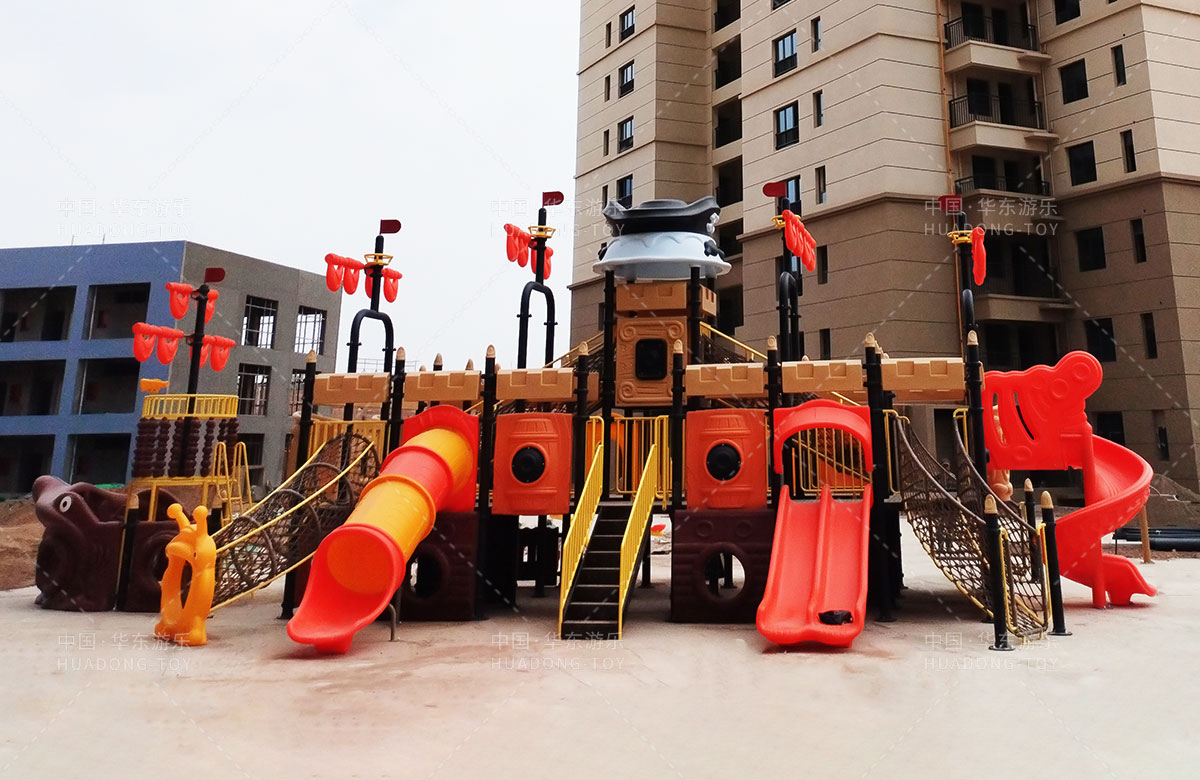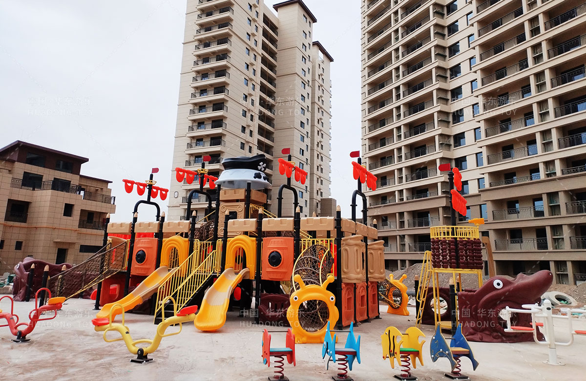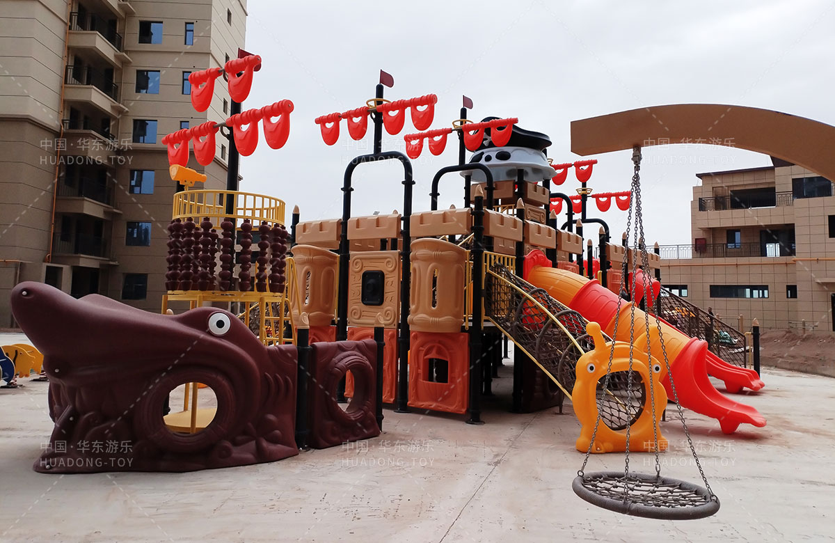 該項目選用的是華東游樂自主研發(fā)和設計的以海盜系列為主題設計的海盜船系列組合滑梯,該滑梯具備功能齊全、顏色艷麗、使用壽命長、安全環(huán)保等特點,是一款非常受小朋友歡迎的組合滑梯,除此之外還設置了小朋友喜歡的兒童搖搖樂、秋千等游樂設備,同時還專門設計了健身區(qū),為生活在當地的人群提供了一個休息、娛樂、遛娃的場所。