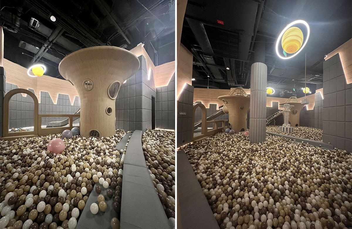 新疆草原大酒店兒童游樂園是一個主題性的旅游酒店,此次選用的是華東游樂自主研發(fā)和設計的以星空探險為主題的室內(nèi)淘氣堡兒童游樂園,整個游樂園分別設計了海洋球、互動媒體、旋轉星球、宇宙飛碟、太空球等功能,整個游樂園燈光與設備交相輝映,孩子們仿佛置身于浩渺的星空世界。