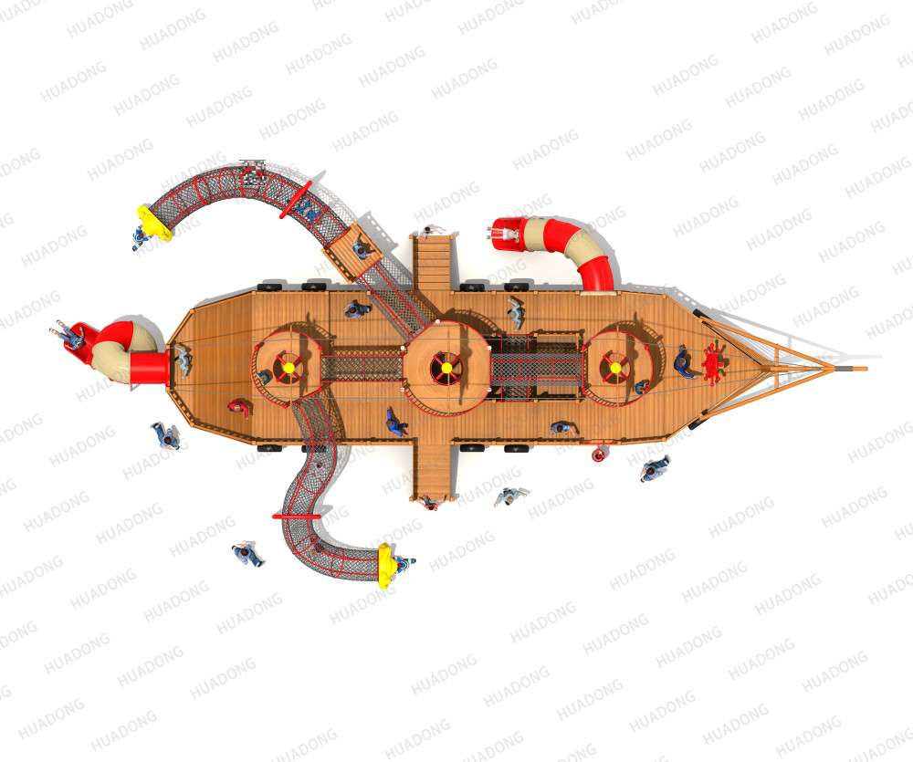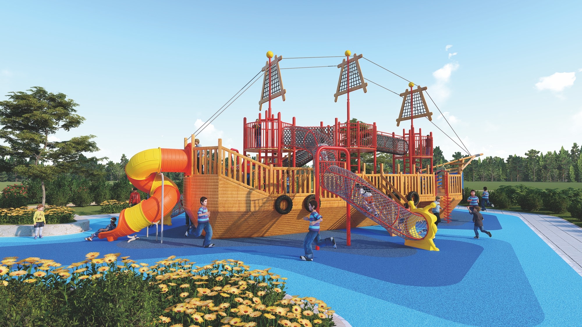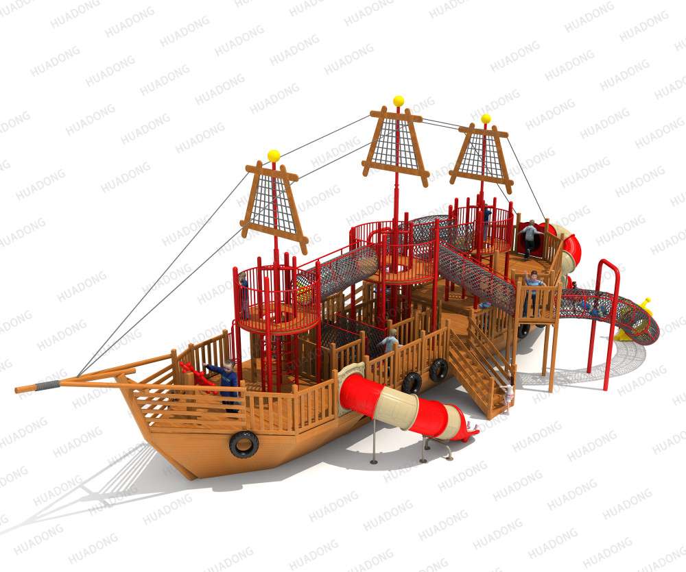 木質(zhì)海盜船組合滑梯的設(shè)計以大自然為主題,融合了船體、桅桿、甲板等元素,外觀新穎、結(jié)構(gòu)牢固。它集攀爬、滑梯、秋千等功能于一體,旨在鍛煉孩子的平衡協(xié)調(diào)能力和自我保護意識,同時培養(yǎng)探險精神。