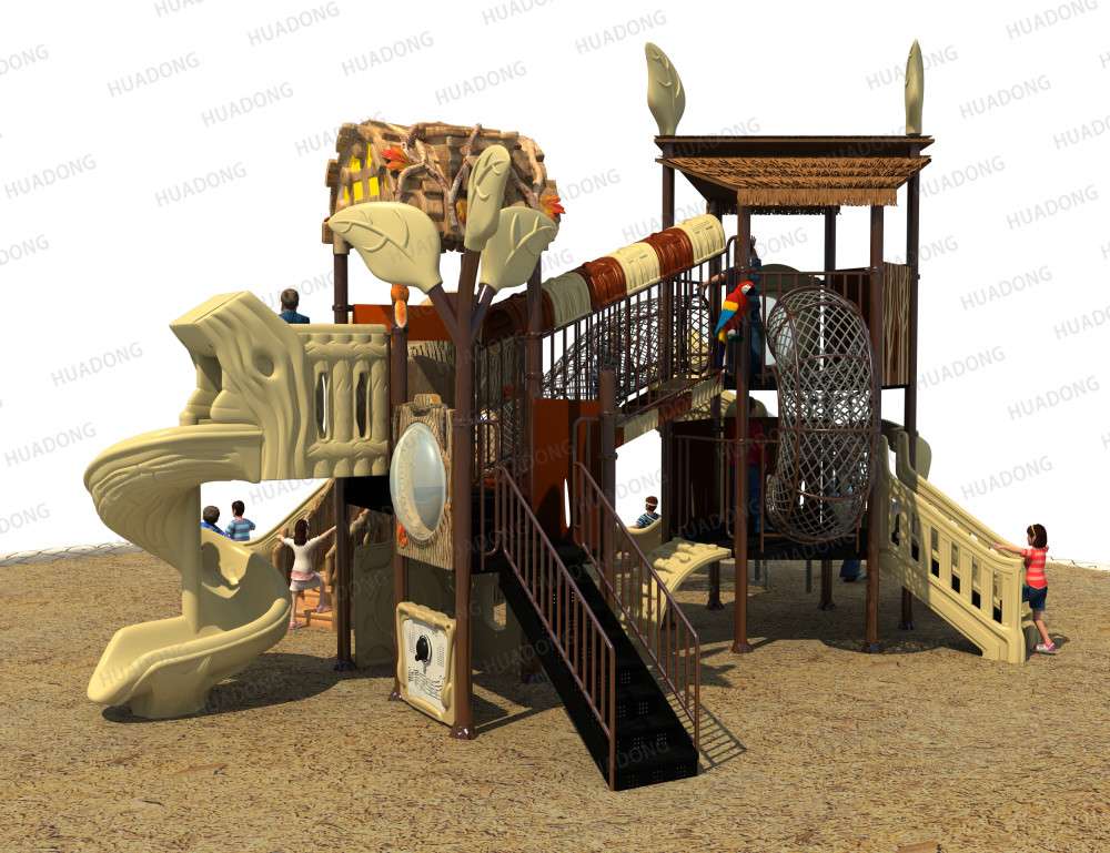 遠古部落系列雖然名字帶著“古”字,但是在設計細節(jié)處無不透露著藝術(shù)與創(chuàng)造性。當孩子在仿真樹中探索、冒險、嬉戲游玩時,就像穿越到古老的神秘森林;粗略的樹干包圍著他們,頭頂是高聳的茅草屋,觸感真實的枯枝走廊,還有隨處可見的小動物們…… 遠古部落系列旨在打造區(qū)別于其他系列帶給孩子們的新鮮感,讓孩子們找設計者打造的神秘世界中獲得冒險的樂趣。